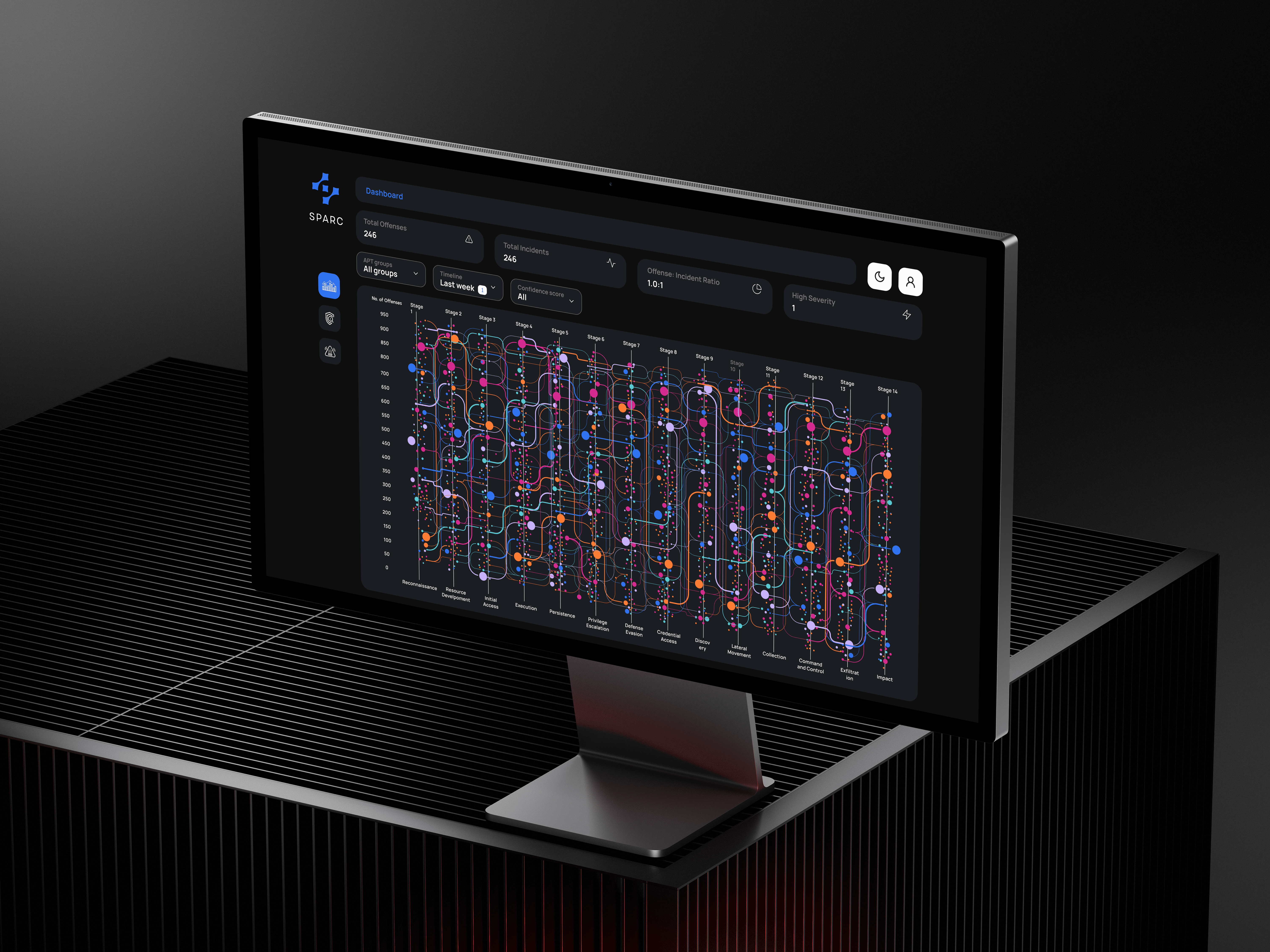 SPARC is an AI-augmented Security Information and Event Management (SIEM) platform that enables security teams to stay ahead of evolving threats with speed and clarity. Its spark-inspired logo forms an “S”, with five sparks representing its core capabilities: Suggestion, Prediction, AI, Retrospection, and Conversational intelligence. Designed for usability, SPARC features an intuitive, compact interface that reduces information overload. At its core is a highly interactive threat timeline, allowing analysts to track, analyze, and investigate incidents in real time. By combining data visualization with AI and conversational layers, SPARC simplifies complex workflows and accelerates decision-making.