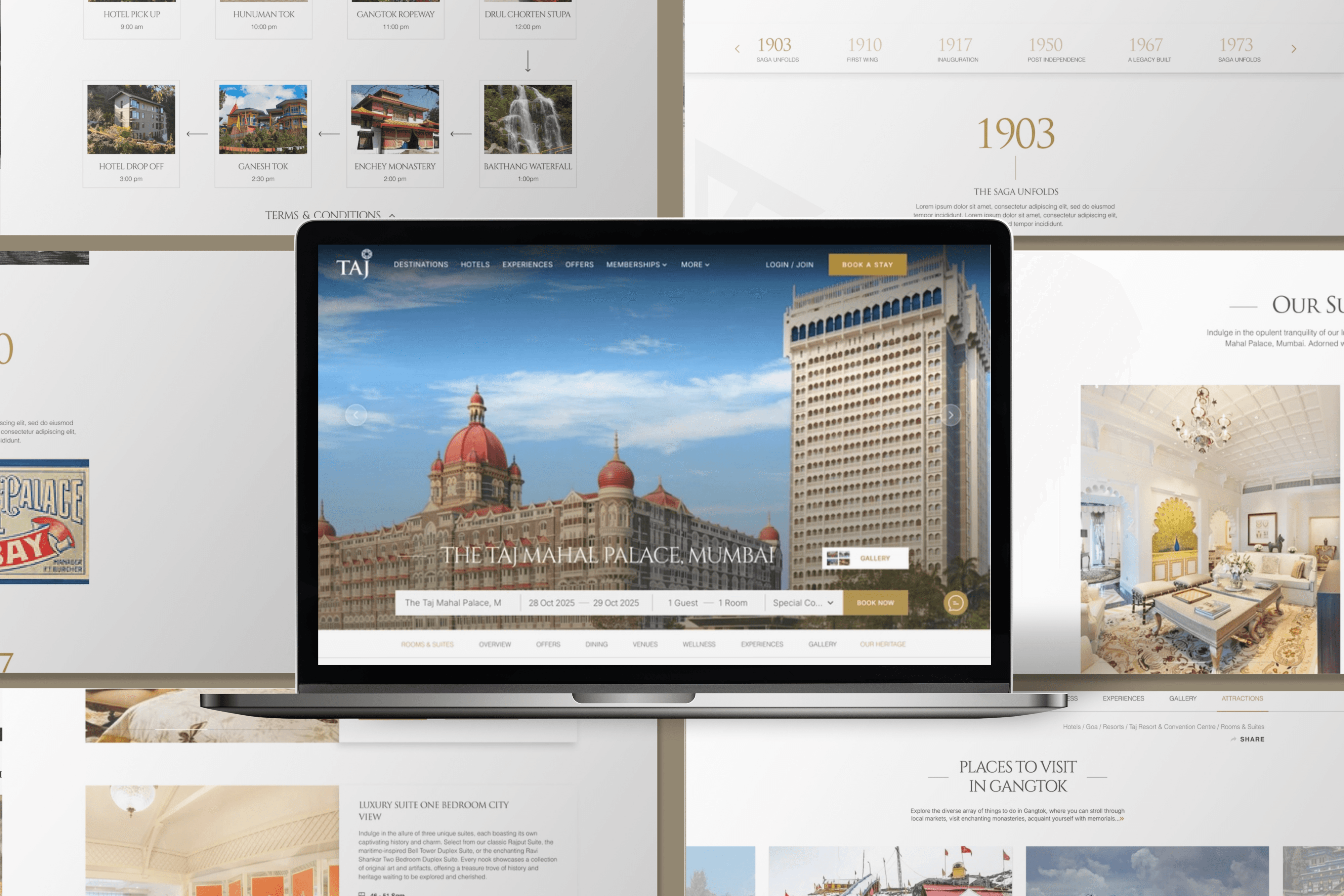 We designed a set of new website pages for the iconic Taj Hotels, enhancing the digital experience for a global luxury audience. The focus was on creating immersive, storytelling-led interfaces that reflect the legacy, elegance, and grandeur of the brand.